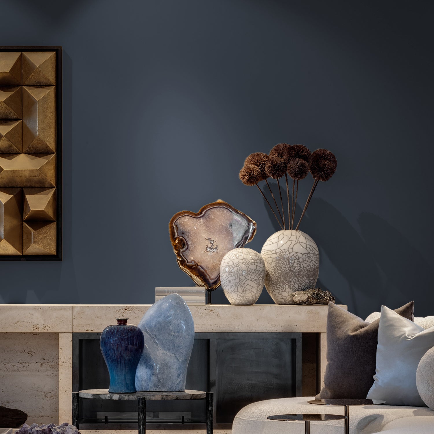 Een verfijnd, bijna zwartblauw dat de mystiek en diepte van de nachtelijke hemel oproept. Het kan een rijke en dramatische sfeer creëren in je interieur, ideaal voor het creëren van een stijlvolle en verfijnde ambiance.