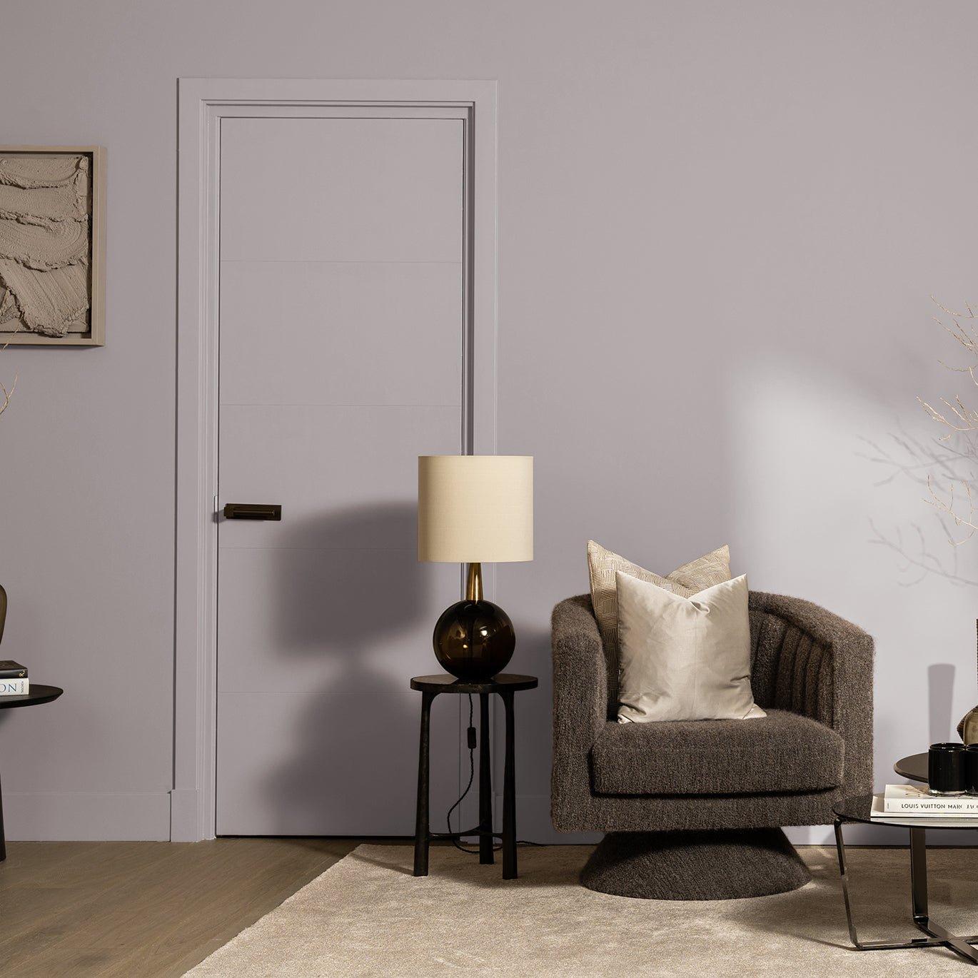 Een subtiele paarse tint geïnspireerd door de zachte randen van een Amethyst edelsteen, ideaal om een sfeer van rust en elegantie in je interieur te creëren. Het geeft je ruimtes een gevoel van luxe en verfijning, perfect voor een stijlvolle leefomgeving.