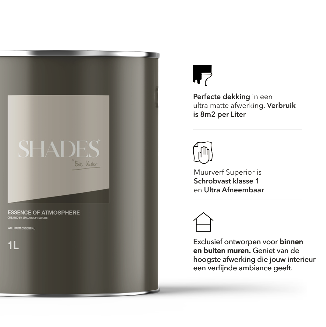 Of je nu een modern stadsappartement, een rustieke plattelandswoning of een luxueuze villa bezit, de kleuren van SHADES by Eric Kuster zijn ontworpen om een wereldse sfeer te creëren met het comfort en de uitstraling van een vijfsterrenhotel. Elke tint is zorgvuldig geselecteerd op basis van Eric Kuster's decennialange ervaring en passie voor design, waardoor je verzekerd bent van een tijdloze en stijlvolle afwerking die jouw persoonlijke smaak weerspiegelt.