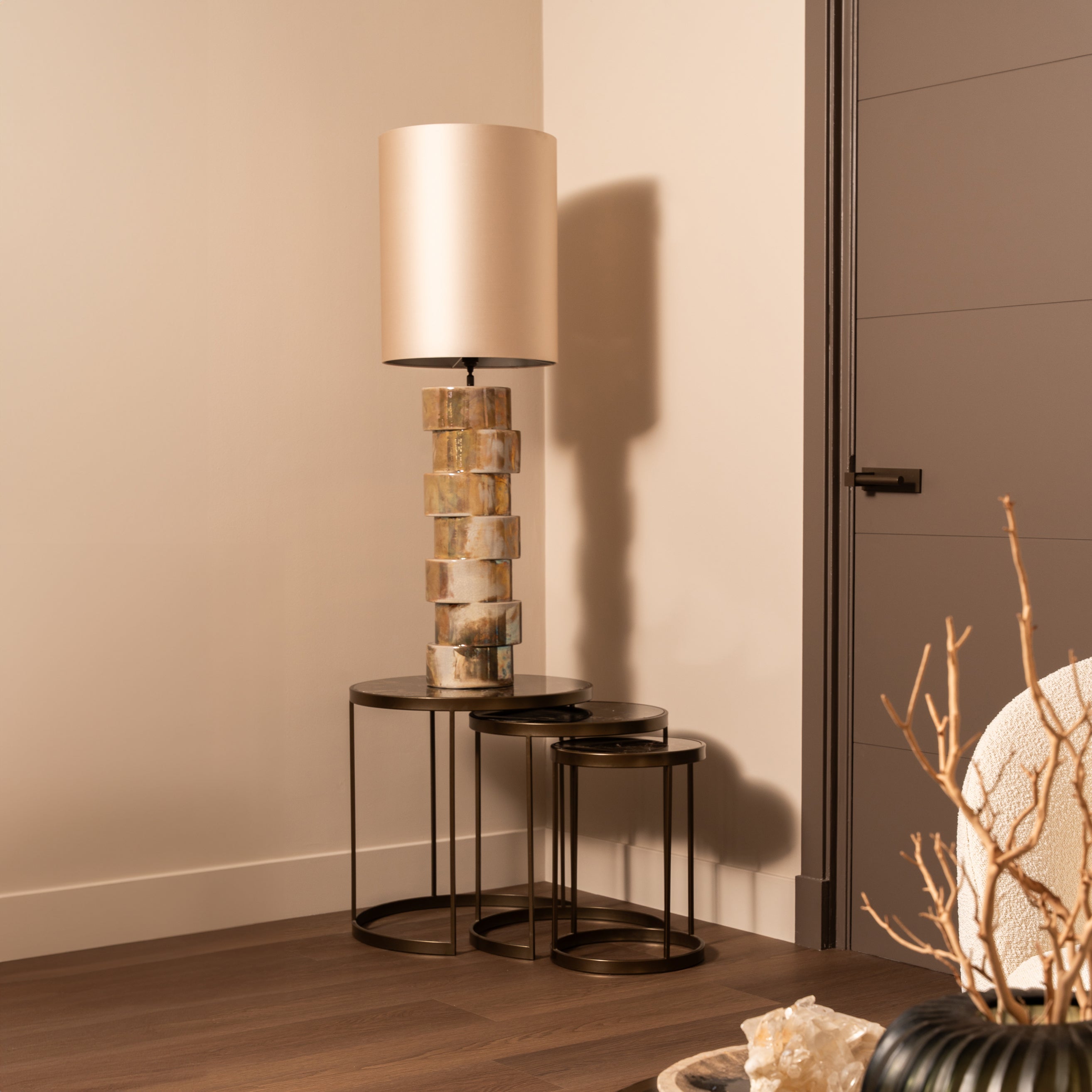 Deze kleur, met nuances van beige, zand en een vleugje grijs (waardoor de kleur niet geel wordt, wat veel beige tinten wel hebben), creeert een ontspannen en warme sfeer. Ontdek nu zelf de charme van deze verfijnde kleur die exclusiviteit en een subtiele elegantie toevoegt aan jouw interieur.