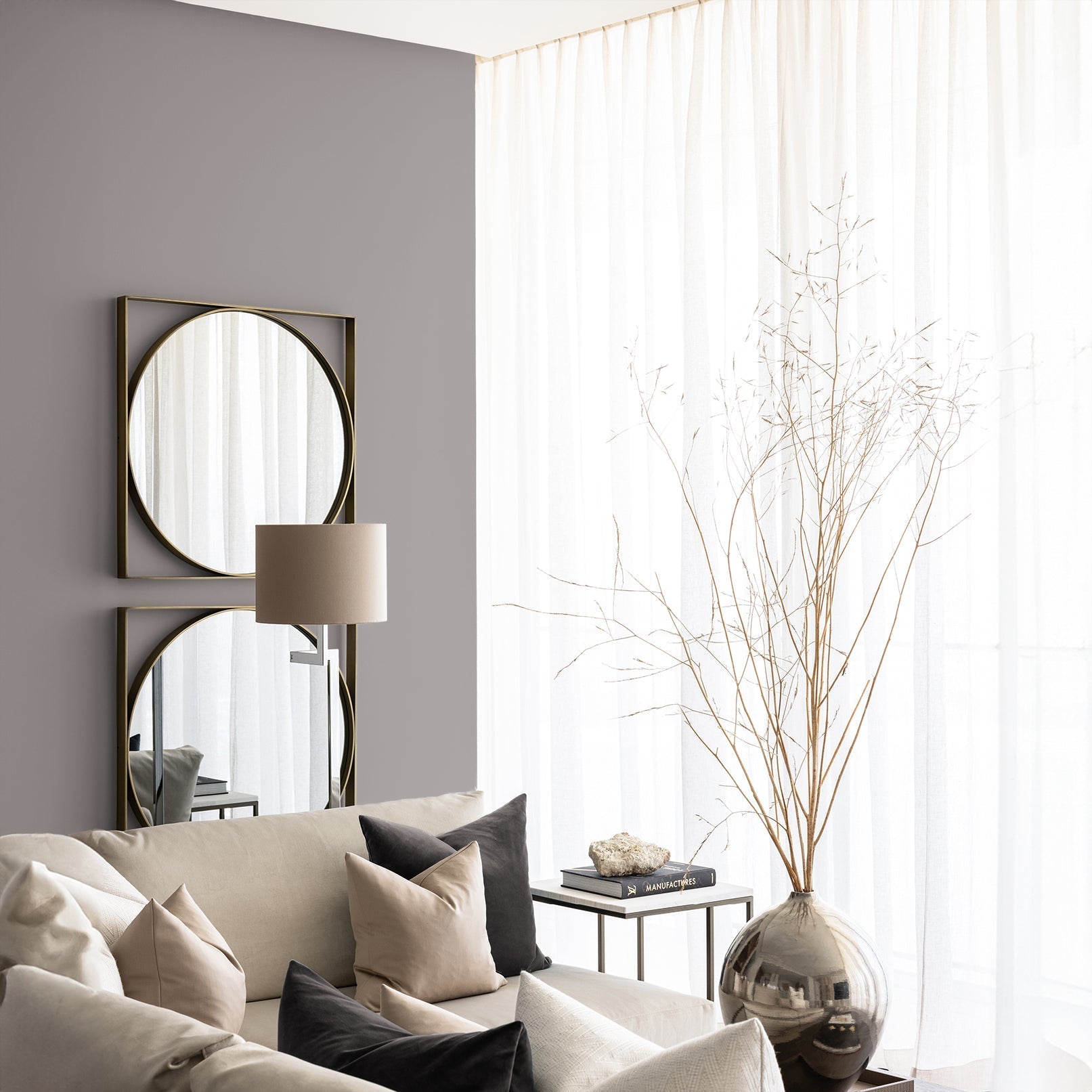 Een zachte, gedempte taupe tint geïnspireerd door de zachte en aantrekkelijke aanwezigheid van de natuur. Perfect om een vleugje natuurlijke sereniteit aan je interieur toe te voegen. Het draagt een subtiliteit en gratie die een kamer in balans brengen en een gevoel van rustieke elegantie bevorderen.