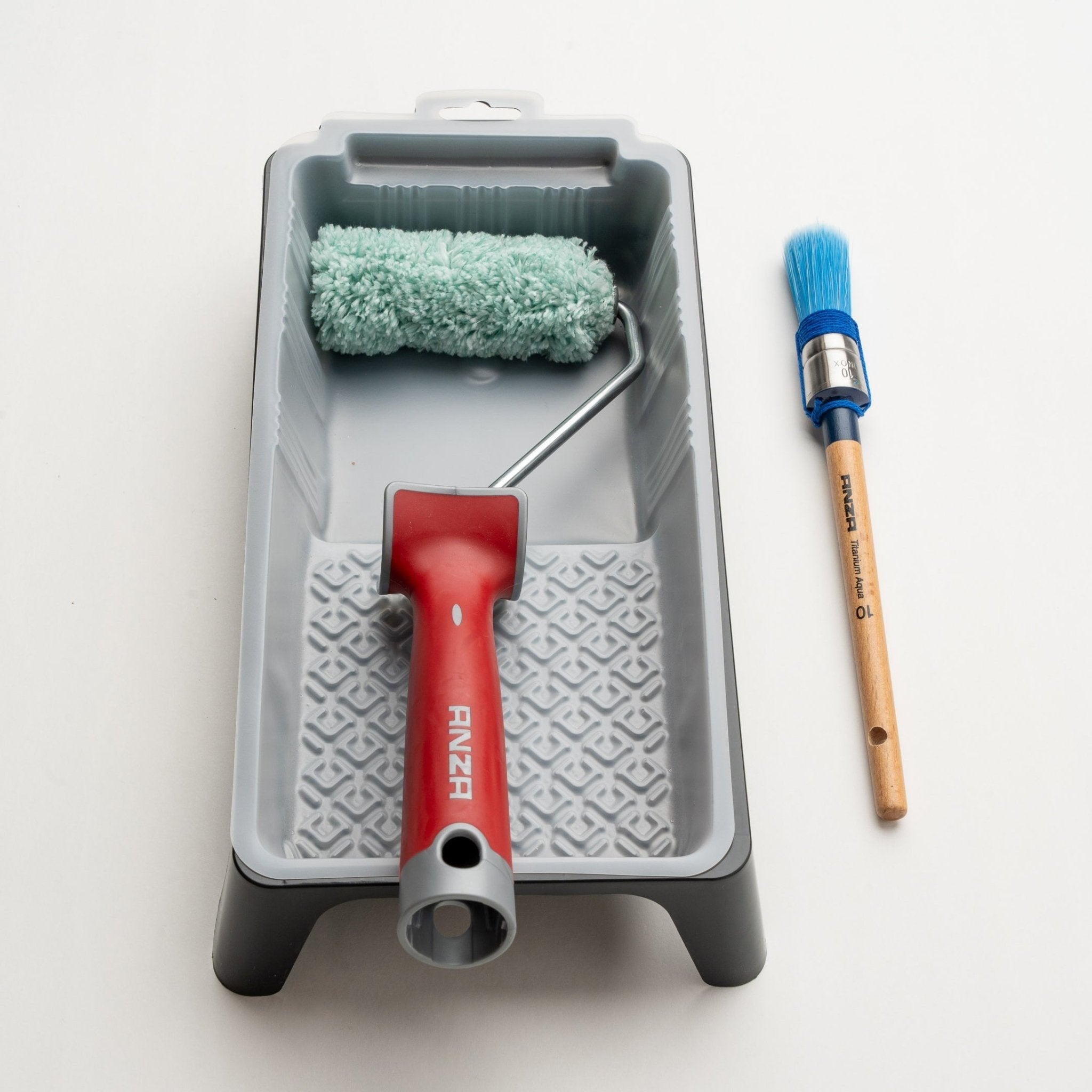 Jouw project starten was nog nooit zo eenvoudig, ik heb de beste accessoires voor je samengesteld. Laat uw muren de taal van luxe spreken met ons Muurverf Pakket Groot. Dit zorgvuldig samengestelde assortiment omvat de ANZA Titanium Aqua ronde kwast 10 voor strakke lijnen en de ANZA Pro Maxi Micmex 10 cm roller voor een naadloze dekking op grote oppervlakken. Afgewerkt met de ANZA Beugel 3C 10cm, onze stevige verfbak en de handige binnenbakken, biedt dit pakket de perfecte tools voor een perfecte afwerking. Creëer mijn Metropolitan Luxury met jouw persoonlijke smaak.